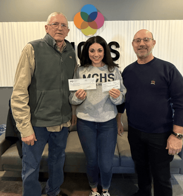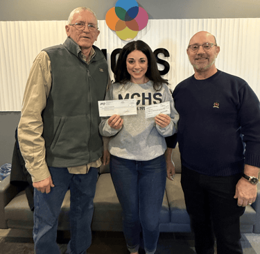 Steve Cantrell and Mark Roth present checks from the MNOA and Aubree's Pizzeria to The Fowler Center in January 2026